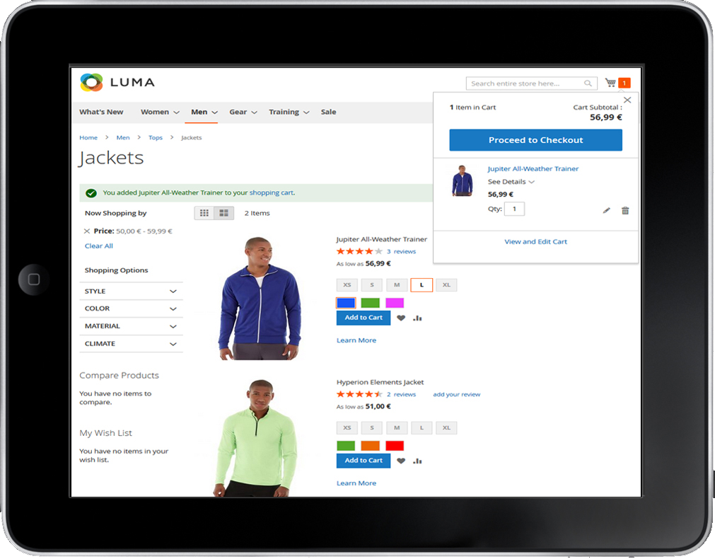 Τα είδη και οι τιμές, που παρουσιάζονται στο e-Shop, συγχρονίζονται με το MyMANAGER. Η διαθεσιμότητα των ειδών απεικονίζει την πραγματική κατάσταση ενός ή περισσότερων αποθηκευτικών χώρων του εμπορικού κυκλώματος.